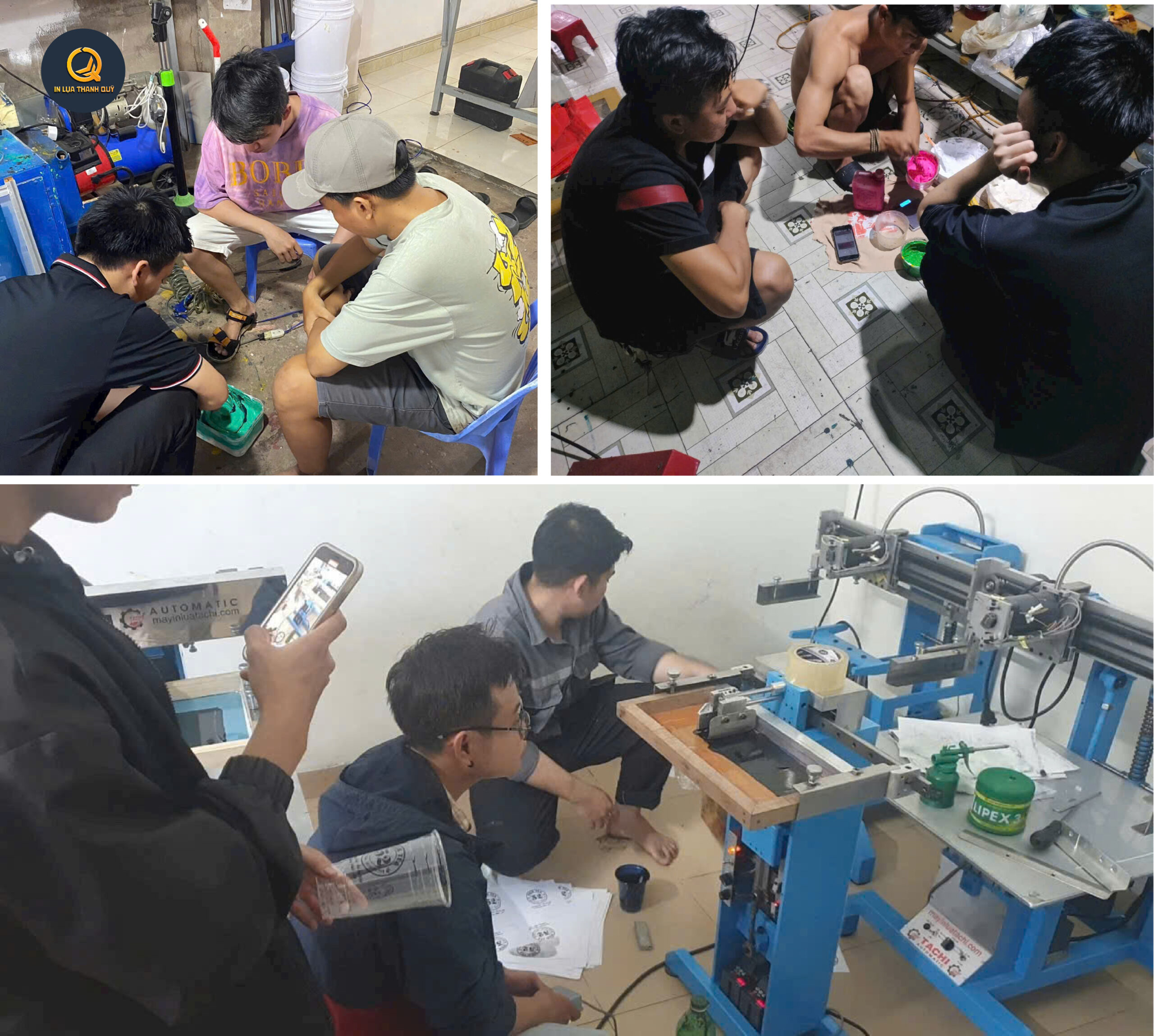Dạy in thực hành và pha mực dầu in trên mọi chất liệu,sản phẩm hàng thật,lý thuyết chỉ chiếm 10% còn lại thực hành chiếm đến 90% khóa học.